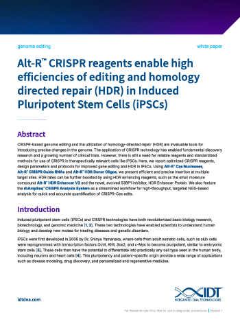 This white paper provides protocols and methods to increase HDR rates in therapeutically relevant cells like iPSCs which have historically been more difficult to edit.