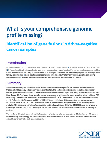 This white paper highlights how Archer™ Anchored Multiplex PCR (AMP™) technology outperforms traditional opposing-primer methods like Thermo Fisher Scientific™ Oncomine™ Comprehensive Assay (OCA), delivering superior fusion detection even in challenging FFPE samples.